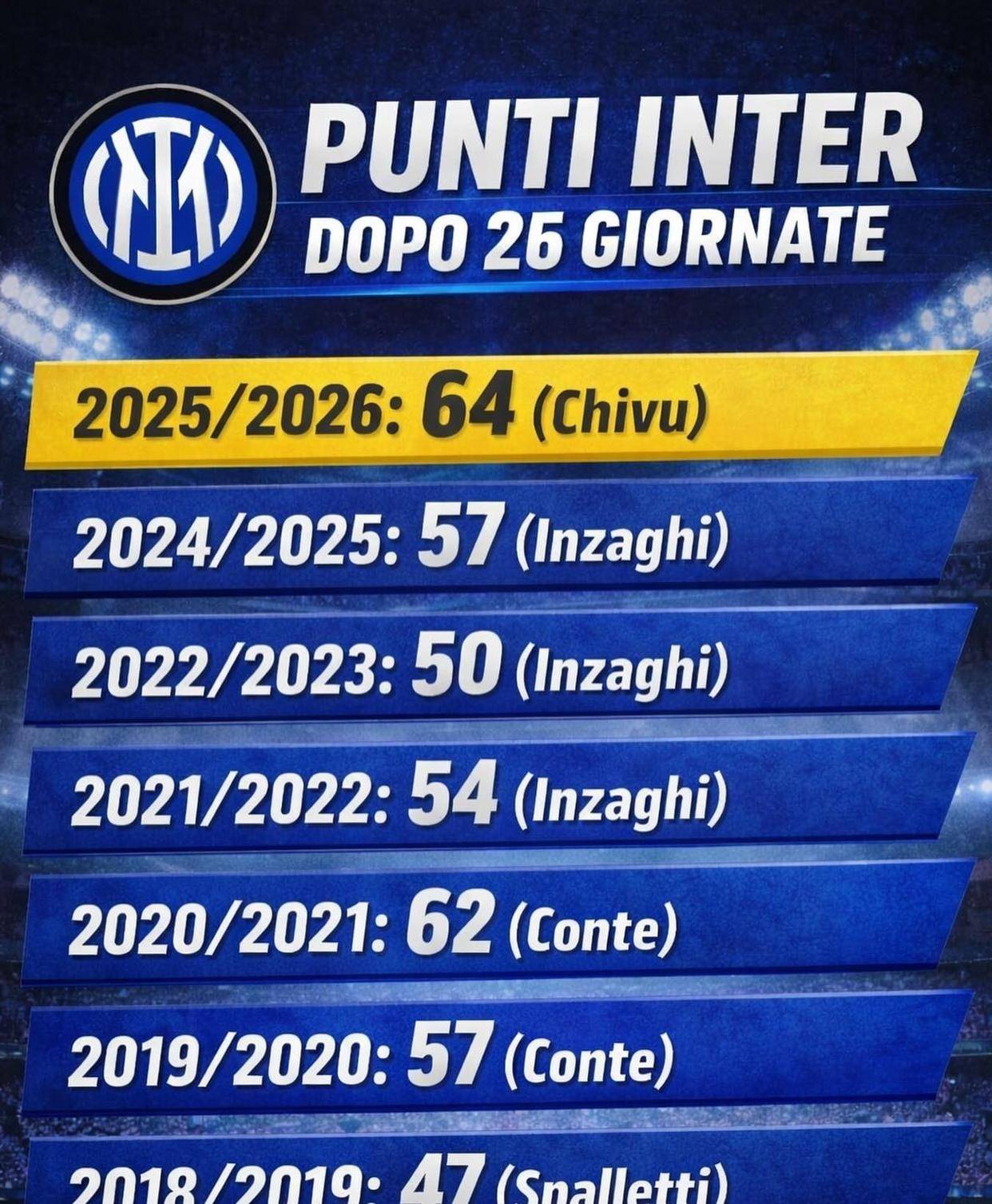 当国际米兰在2025年夏天宣布功勋后卫齐沃出任主帅时,质疑声几乎淹没了所有期待。 一个只在帕尔马有过短暂保级经验的“菜鸟”,凭什么接手豪门? 然而,大半个赛季过去,所有质疑者都被狠狠打脸。 截至意甲第26轮,齐沃的球队豪取64分,积分同期超越了小因扎吉、孔蒂和斯帕莱蒂三位名帅。 更惊人的是,球队在2026年初的魔鬼赛程中28天9赛,拿下了7胜1平1负的恐怖战绩。这绝非运气,而是一场从战术到心理的全面革新。